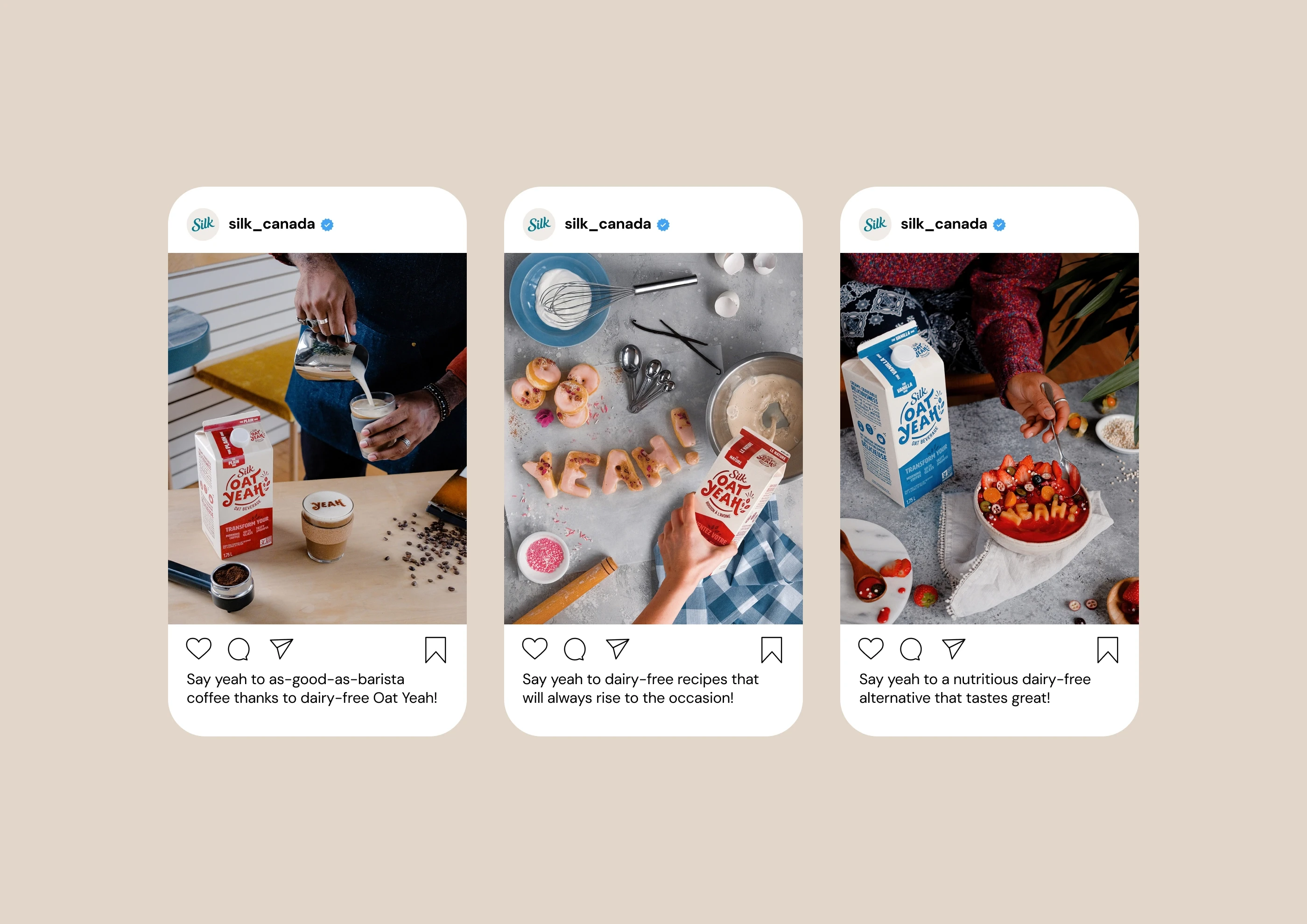 To celebrate the launch of Silk’s new oat beverage, we created a youthful campaign emphasizing the joy and euphoria that comes with choosing and consuming quality oat milk. Through aesthetic scenes and captivating expressions, everyone ended up Saying Yeah to Oat Yeah!